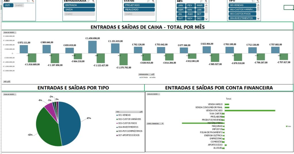 5) Mostra um DASHBOARD GRÁFICO E INTERATIVO da movimentação de caixa da sua empresa;